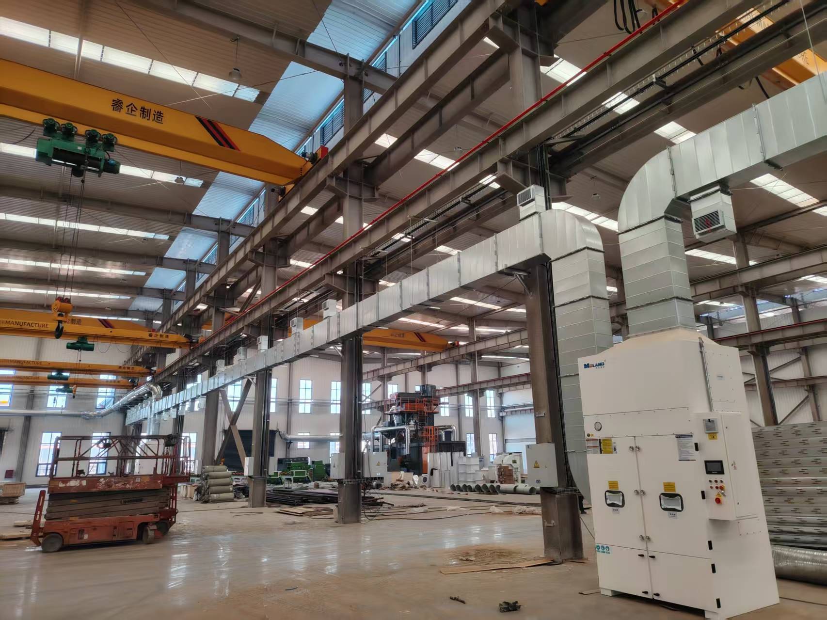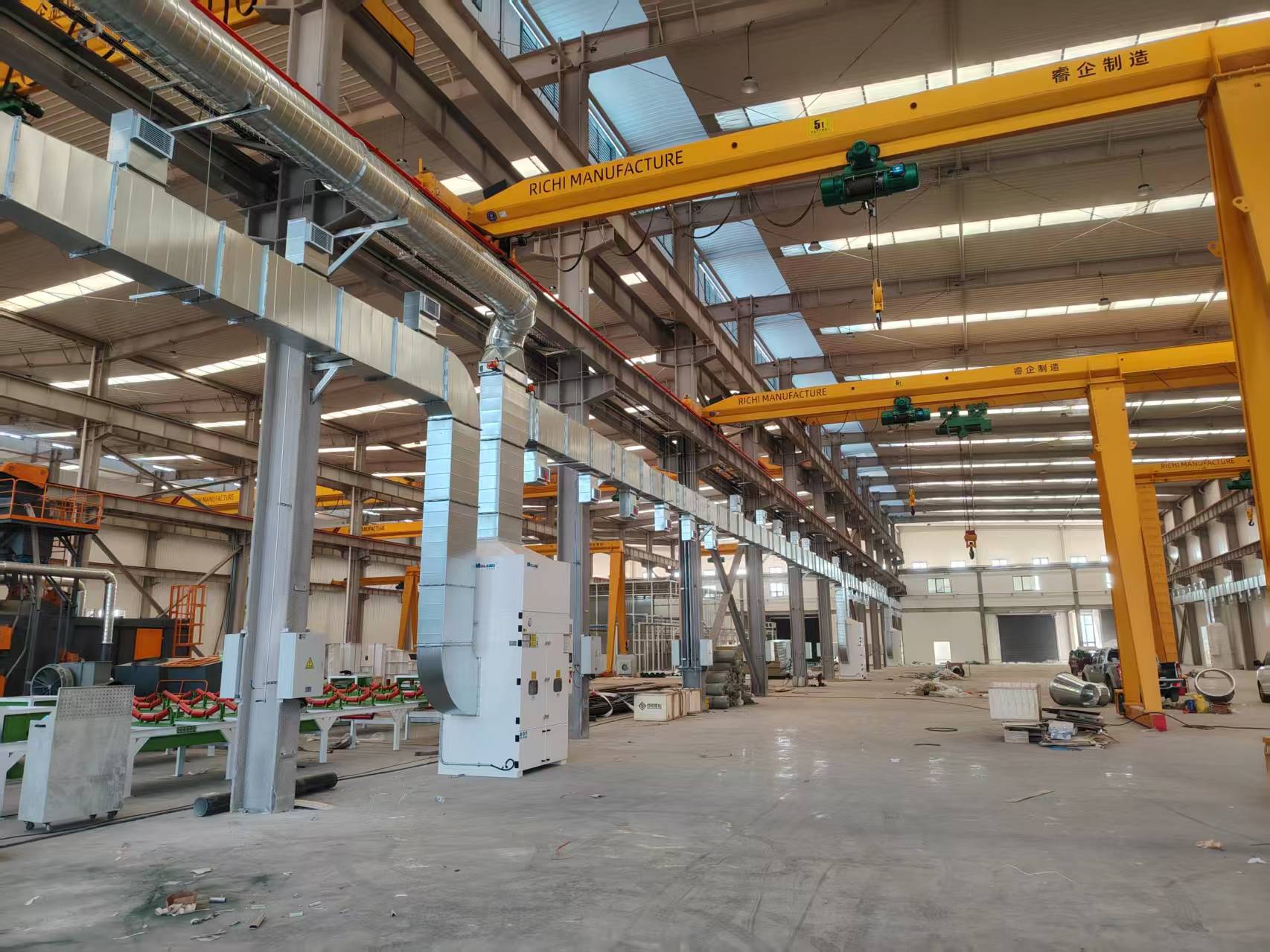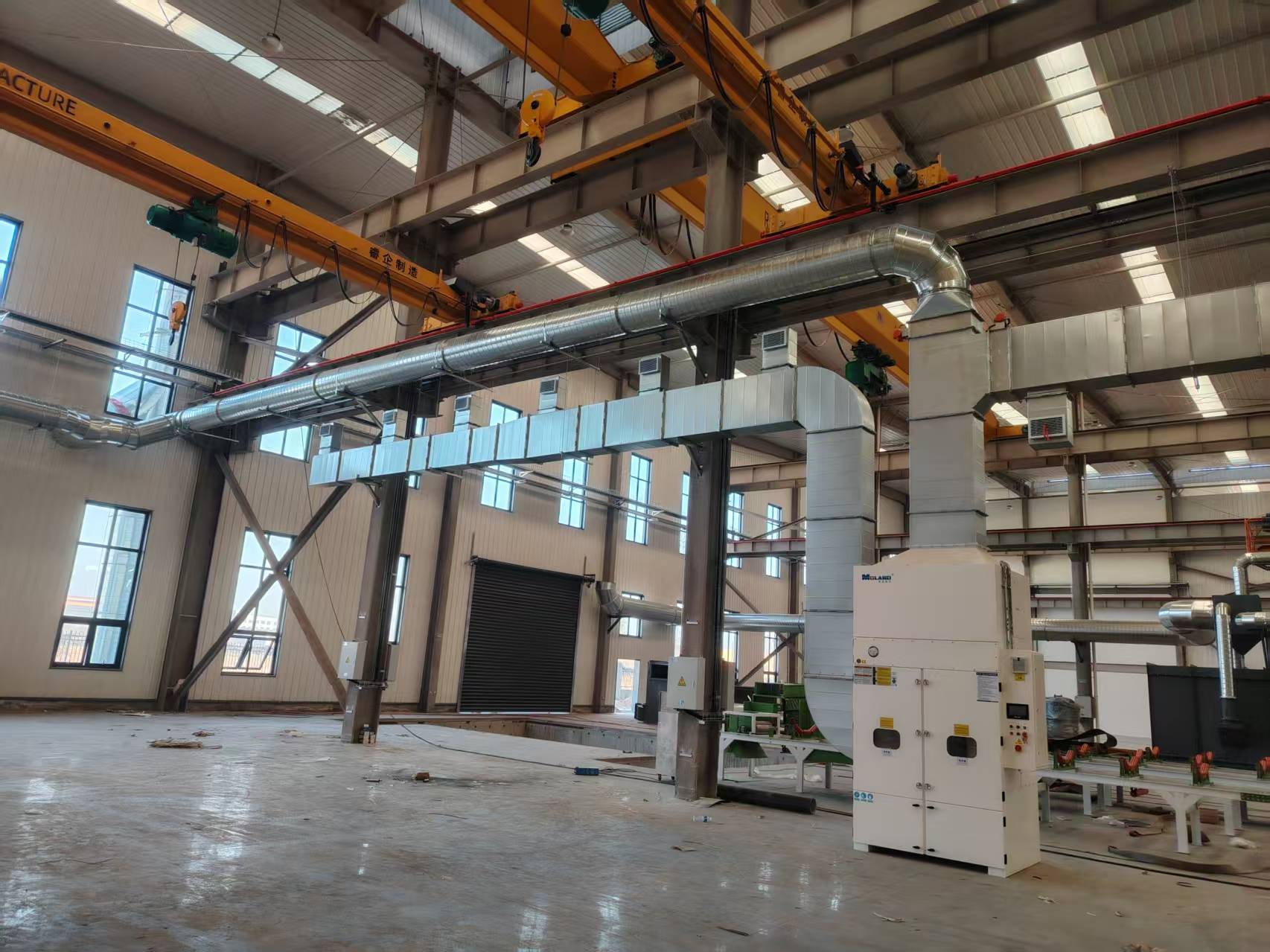 根据现场实际情况及生产工艺,焊接车间采用六台整体吹吸式空气内循环进行烟尘收集净化。